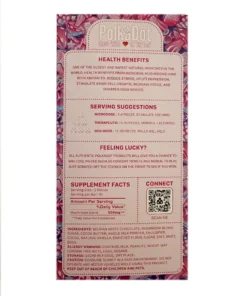 Assorted berries blended with creamy chocolate and mushrooms Each truffle contains half a gram of mushroom chocolate Delightful balance of tangy and sweet flavors Perfect for post-dinner indulgence or sharing with loved ones Satisfies the palate while providing added benefits Delight in the vibrant flavors of Berries & Cream Polkadot Mushroom Chocolate Truffles.